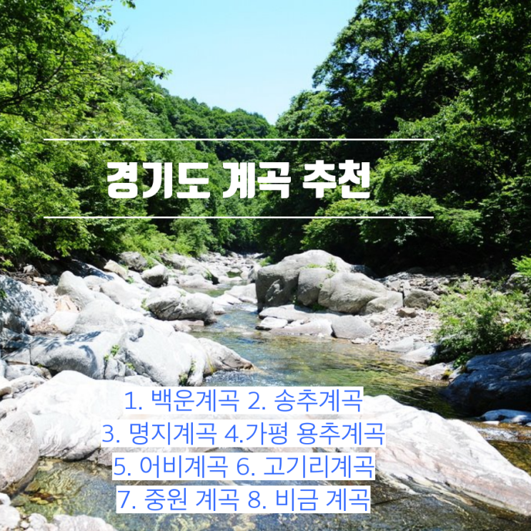 이제 본격적으로 경기도에서 추천하는 계곡들을 소개해 드릴게요!